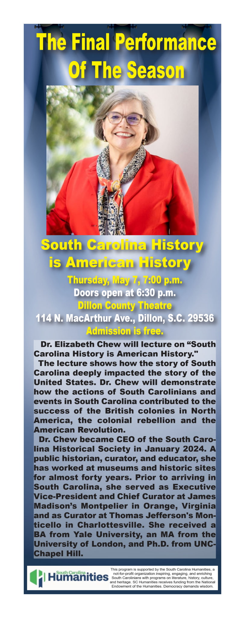 Dr. Elizabeth Chew will lecture on “South Carolina History is American History”
